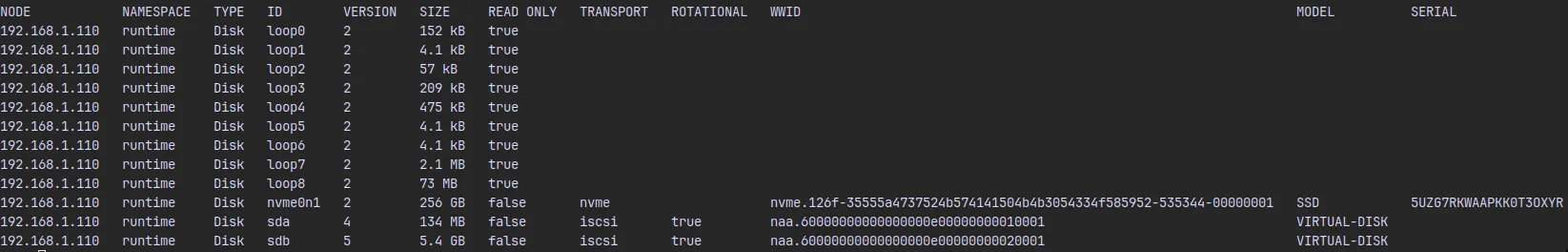 talosctl get disks --insecure --nodes $CONTROL_PLANE_IP