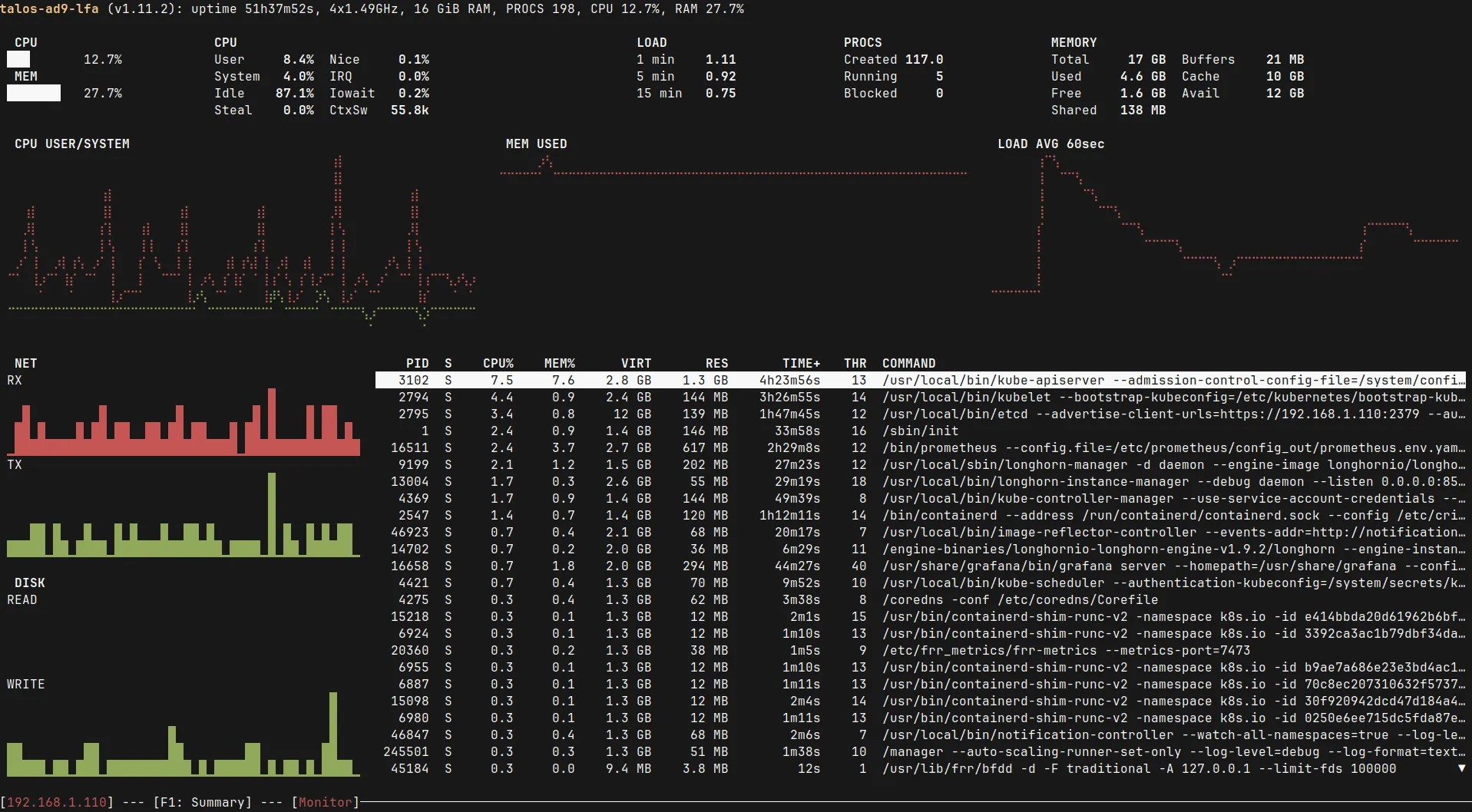 Tech: Talos Linux 路 Kubernetes 路 FluxCD 路 Helm 路 Kustomize 路 Docker 路 Traefik 路 Cert-Manager 路 MetalLB 路 Longhorn 路 Prometheus 路 Grafana 路 Bash