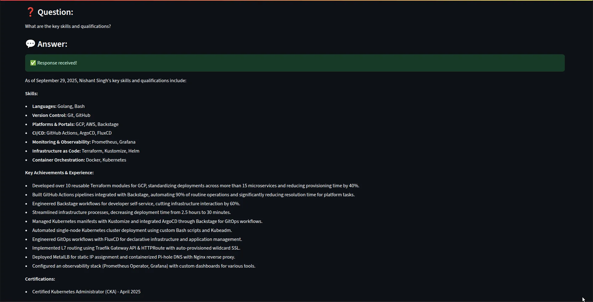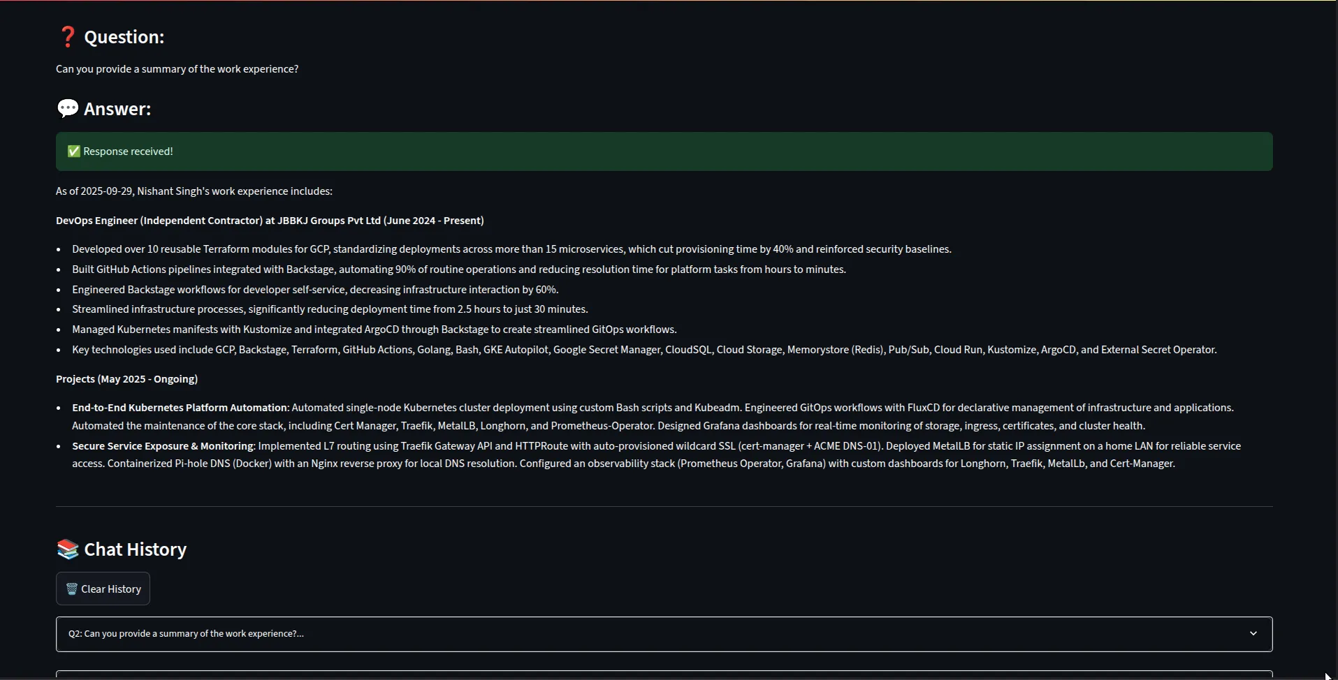 - Cloud-native AI app for portfolio Q&A using LLMs, LangChain & Chroma.